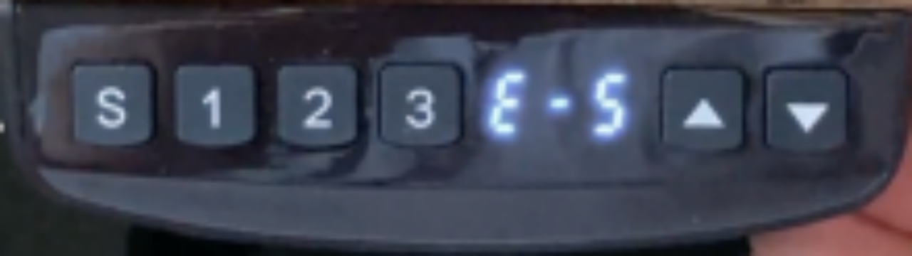 Code Meaning | Prompt for mechanical reset | Abnormal connection of the hand control/control box to the table leg | Detected (dual motor) inconsistency in height between the two table legs | Bounce protection activated when blocked in operation | Abnormal communication between the hand control and the table leg |