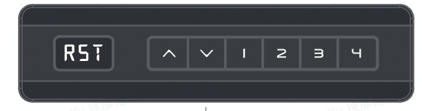 1. Press and hold the “Down” key for 5 seconds, and the digital display shows “RST”.