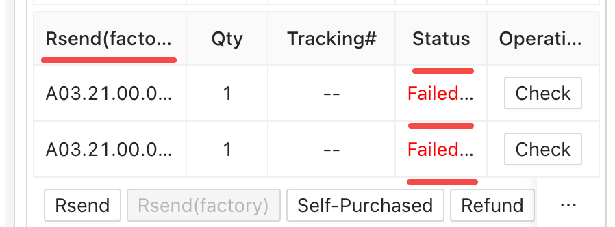 a. if you arrange sth from the factory and the status shows failedit means that you can not arrange it from the factory, and you need to check if it is in stock in the warehouse.