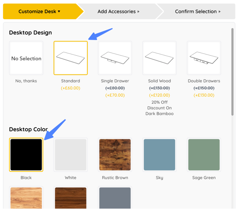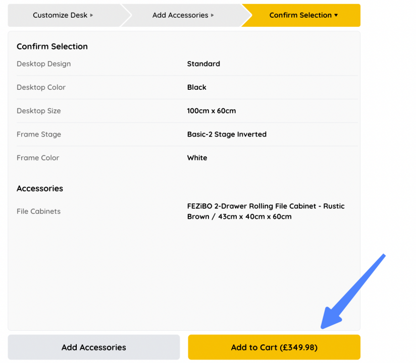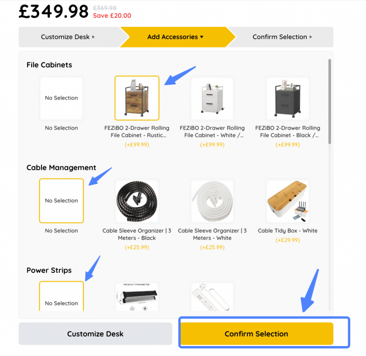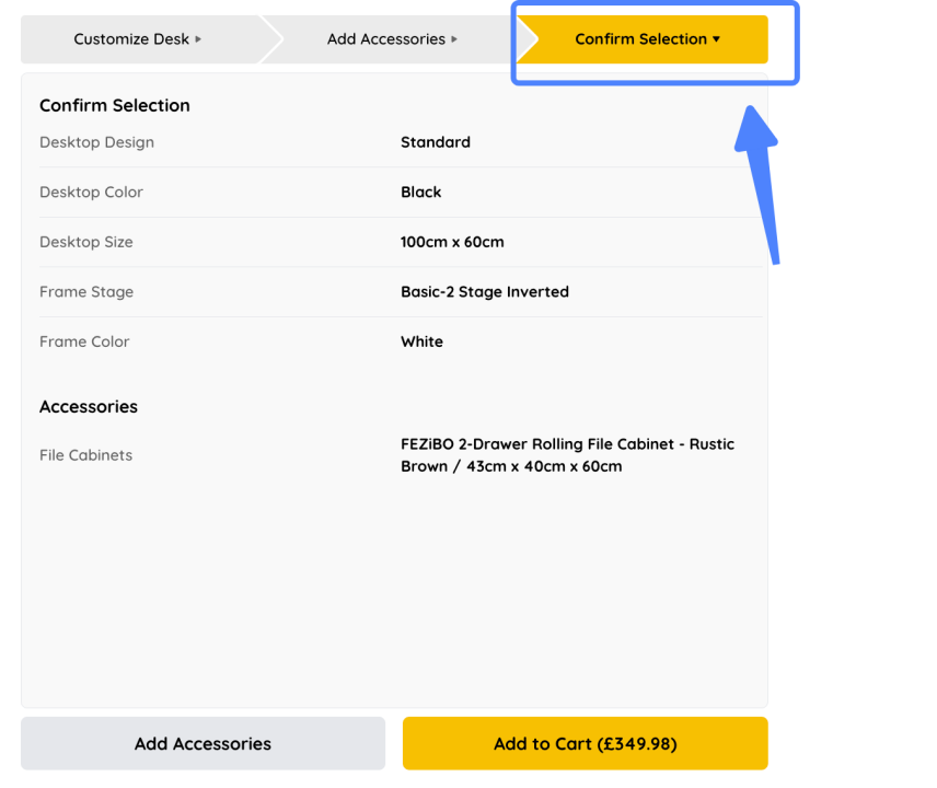 Ensure that the options the customer wants to select are all in yellow - once the boxes are selected, click confirm Selection, then click add to cart and it will be added to the cart