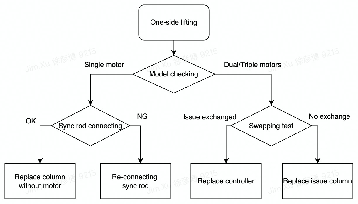 【Gorgias Template】:【升降故障】JCH-高低 单边 升降-单电机 排查 解决 Troubleshooting-Tilted Desktop-SingleMotor Desk