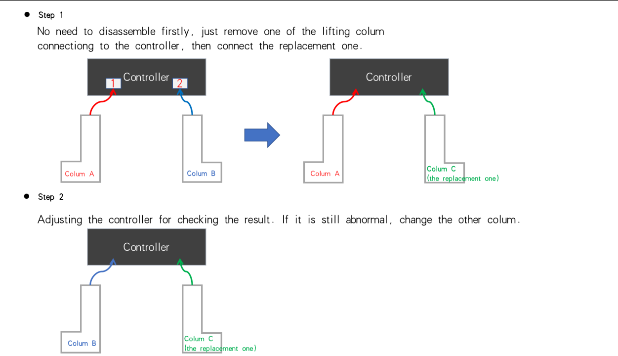 【升降故障】MDW-交叉 双电机 单边升降 高低升降 -- 升降不同步 单边不升 交叉测试 Cable Swapping Test