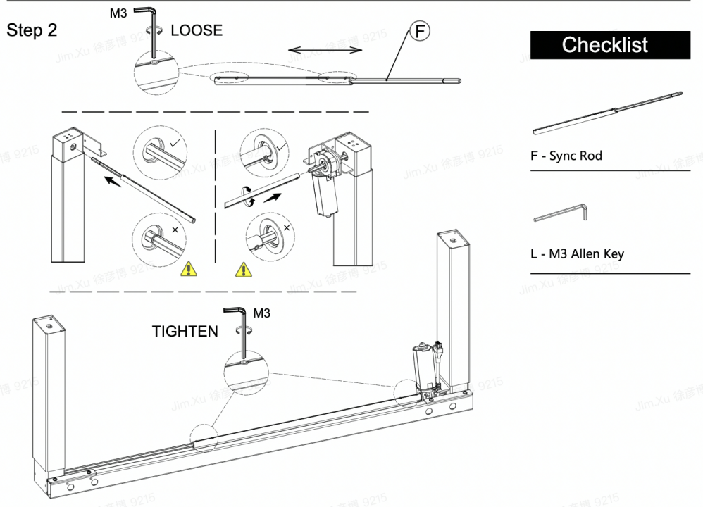 1. Take photos to check whether both ends of the sync rod are inserted in place.