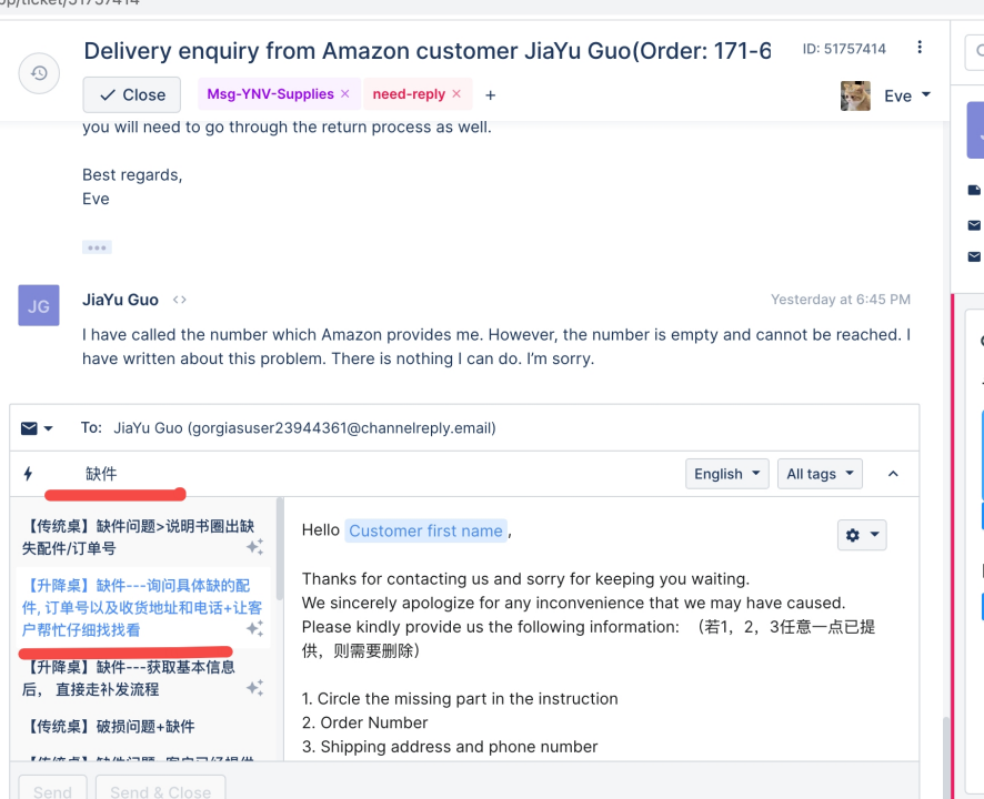 Thanks for getting back to me but I am sorry to say we didn’t receive the info (the info that customers do not provide) required in my previous email/chat. Would you mind sending it to us? It’s going to be really helpful in getting this problem solved quickly.
